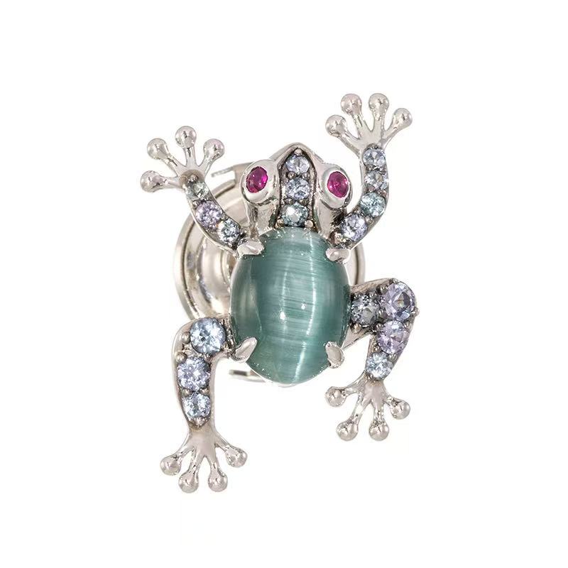 PT950 トルマリンキャッツアイ カラーチェンジガーネット ルビー かえる ピンブローチ T 約1.00ct CG 約0.20ct RB 約0.03ct