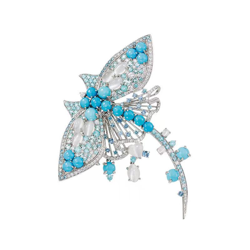PT950 スリーピングビューティーターコイズ(スタビライズ) ブラジル産パライバトルマリン Water World ブローチ TQ 約6.30ct PRT 約1.20ct MO 約3.80ct MO 約0.70ct D 約1.35ct BE 約0.65ct IBD 約0.55ct AQ 約0.35ct