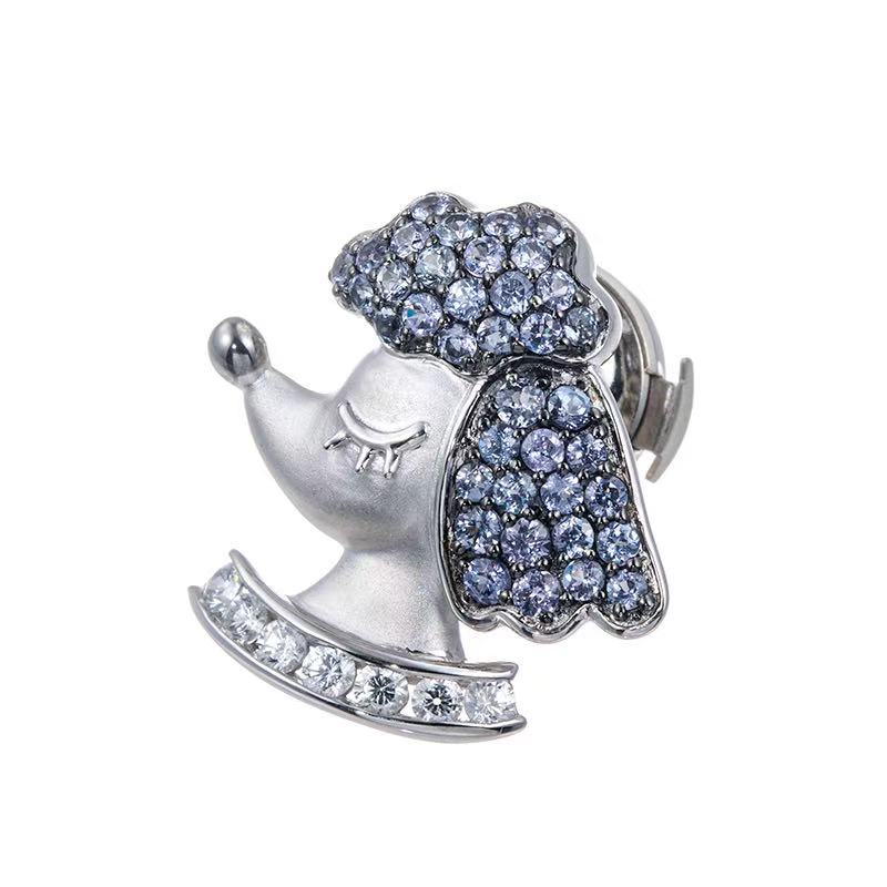 パラジウムシルバー950 サファイア 天然ホワイトジルコン 子ネコ ブローチ SA 約0.05ct ZI 約4.45ct