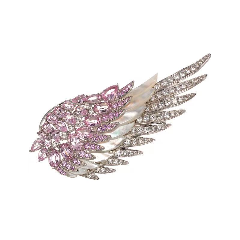 パラジウムシルバー950 タンザニア産フラミンゴスピネル ピンクサファイア 天然ホワイトジルコン 白蝶貝 Mia ブローチ SP 約6.45ct PS 約0.70ct ZI 約2.55ct