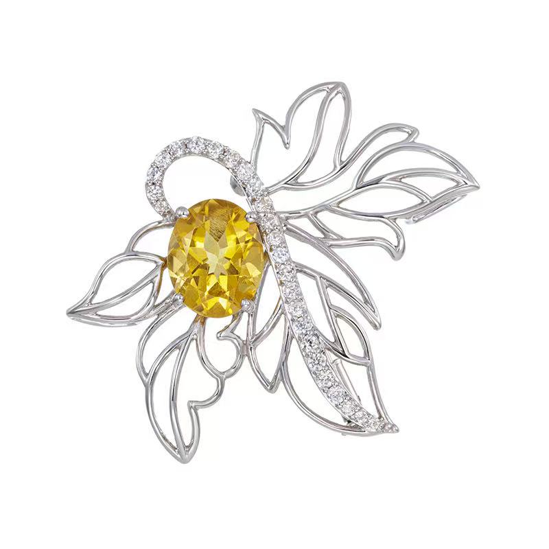 パラジウムシルバー950 シトリン 天然ホワイトジルコン ブローチ CI 約3.00ct ZI 約0.65ct