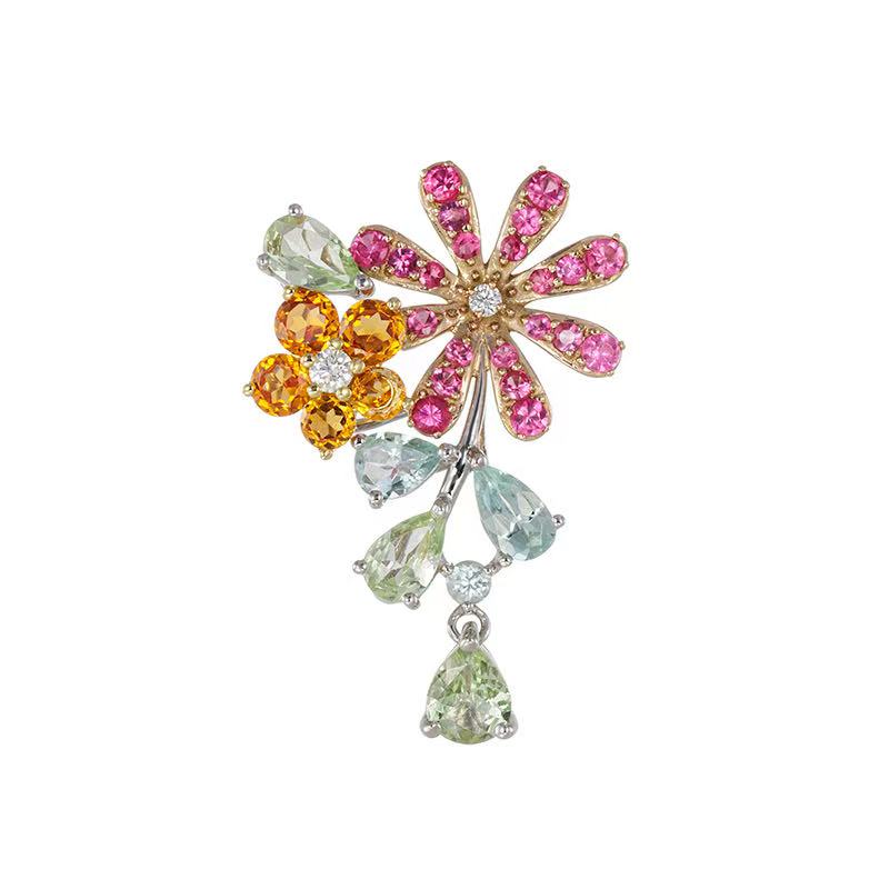 PT950/K18YG/PG マンダリンガーネット アヤナスピネル フラワーガーデン ペンダントトップ GA 約0.40ct SP 約0.32ct GA 約0.50ct KO 約0.30ct D 約0.03ct